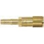 Lynkobling i messing med slangestuds af rustfrit stål. Komponenterne er tilpasset gastypen og er nemme at tilslutte/frakoble uden brug af værktøj. Til lavtrykssiden.