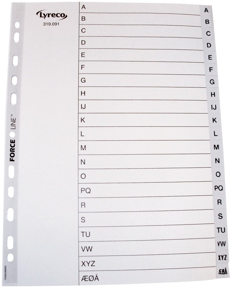 Dette A-Å register fra Lyreco er ideelt til organisering af dokumenter i A4 format. Fremstillet af slidstærk, grå PP-plast med en tykkelse på 120 my, sikrer det langvarig brug og beskyttelse af dine vigtige papirer.