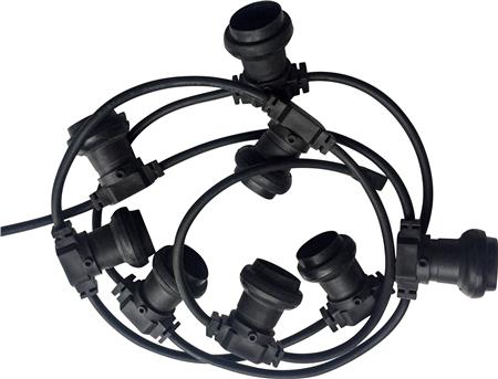 Denne lyskæde er ideel til at skabe en hyggelig atmosfære både indendørs og udendørs. Med sine sorte fatningshuse og robuste H07RN-F 2x1,5 ledning, er den designet til at modstå forskellige vejrforhold.