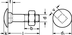 Elforzinket bræddebolt M10x25 DIN 603/555, klasse 4.6, inklusive møtrik.
