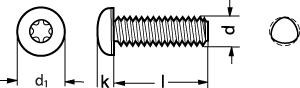 M4X25 DIN 7500 form C rustfri panhoved gevindformende skrue med T-Drive.
