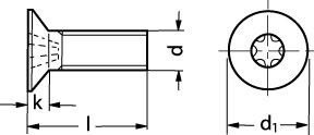 Skruen har et undersænket hoved med et torx-spor (TX), der giver en jævn og plan overflade, når den er monteret. Torx-sporet sikrer desuden en god kraftoverførsel og minimerer risikoen for beskadigelse af skruen under tilspænding.