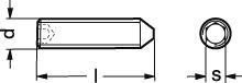 M 8x35 ISO 4027/DIN 914 rustfri pinol skrue med indvendig 6-kant og spids.