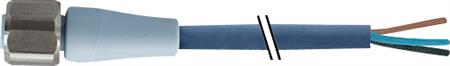 F&B Pro følerkabel, sensorkabel eller transmissionskabel til sensorer eller aktuatorer. M12 hun, lige rustfri V4A, 5-polet, A-kodet, med kabel 5x0,34mm2 pastel blå TPE-S.