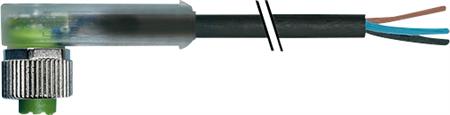 Føler-/sensorkabel M12 hun, vinklet 4-polet LED, 24VAC/DC, A-kodet