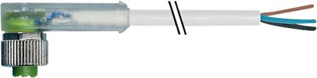 Dette følerkabel er ideelt til tilslutning af sensorer og aktuatorer. Kablet er udstyret med et vinklet M12 hun-stik, der sikrer en pålidelig og pladsbesparende forbindelse.