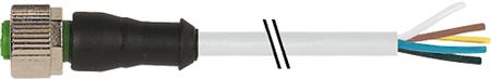 Følerkabel, sensorkabel eller transmissionskabel til sensorer eller aktuatorer M12 hun lige 8-polet A-kodet med kabel 8x0,25mm2 grå PUR UL/CSA egnet til kabelkæde, 5 meter.