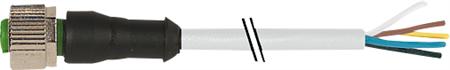 Dette følerkabel er et sensorkabel eller transmissionskabel til sensorer eller aktuatorer. Det er designet med et M12 hun lige stik, 8-polet og A-kodet, med et 8x0,25mm2 gråt PUR kabel. Kablet er UL/CSA godkendt og egnet til brug i kabelkæder. Længden er 15 meter.