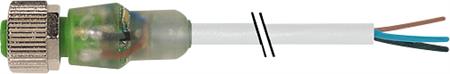Følerkabel, sensorkabel eller transmissionskabel til sensorer eller aktuatorer M12 hun lige 4-polet LED 24VAC/DC A-kodet 2 og 4 forbundet med kabel 3x0,34mm2 grå PUR UL/CSA.
