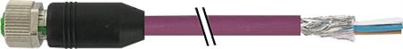 Dette DeviceNet/CANopen M12 hun stik er lige og 5-polet, A-kodet. Kablet er 2xAWG24+2xAWG22, skærmet og violet PUR UL/CSA egnet til kabelkæde, 0,3 meter.