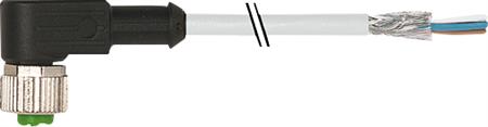 Følerkabel, sensorkabel eller transmissionskabel til sensorer eller aktuatorer. M12 hun, vinklet 4-polet, A-kodet med kabel 4x0,34mm2, skærmet grå PUR/PVC, 30 meter.