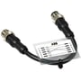 M12 Y-konnektor for nem installation af lysbomme. Med M12 8-polet hun stik, M12 5-polet hus stik og M12 8-polet han stik.