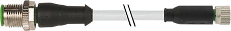 Dette følerkabel er ideelt til brug som sensorkabel eller transmissionskabel til sensorer og aktuatorer. Kablet er udstyret med et M12 han-stik (lige, 3-polet) i den ene ende og et M8 hun-stik (lige, 3-polet) i den anden ende. Det er A-kodet og består af et 3x0,25mm2 gråt PVC UL/CSA kabel med en længde på 1 meter.