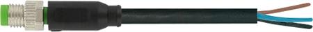 Dette følerkabel er et sensorkabel eller transmissionskabel til sensorer eller aktuatorer. Det har et M8 han lige 3-polet stik med et 3x0,25mm2 sort PUR UL/CSA kabel, der er egnet til kabelkæder og har en længde på 1,5 meter.
