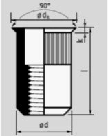 Denne blindnittemøtrik er udført med et lille undersænket hoved i stål FZB. Den er ideel til applikationer, hvor der kræves en stærk og pålidelig fastgørelse i tynde materialer.
