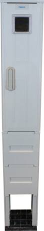 Gadeskab/målerstander med rude, montageplade og stikbensmåler klemrække 63 A. Mål: 840 x 260 x 250 mm. Højde inkl. sokkel 1695 mm. Produceret i polyester.