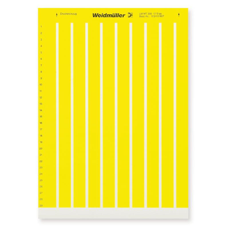 Polyestermærker til udstyridentifikation. Kan printes med laserprinter. Gul, -45°C til +150°C.