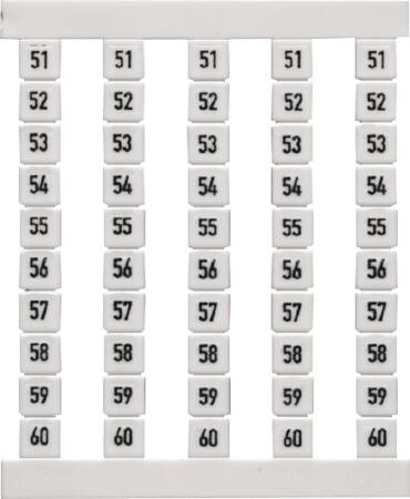 Dekafix DEK 5-FSZ 5 mm til rækkeklemmer med fortløbende lodret tryk (51-60). Fremstillet af Polyamid 66, halogenfri, og med sort tryk.