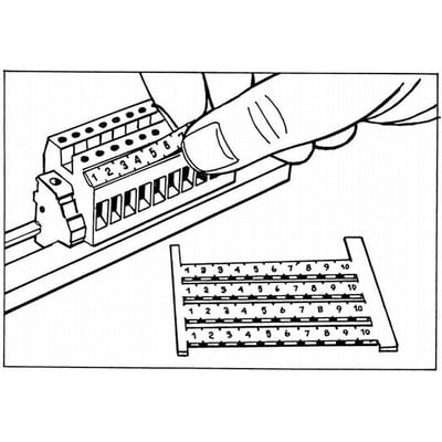 DekaFix DEK 5-GW, 5 mm, er designet til rækkeklemmer og leveres med GW-mærker, der har ens vandret tryk, f.eks. L1.