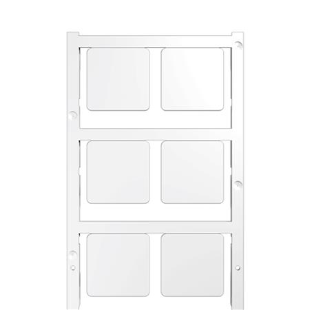 Hvidt klæbemærke i størrelsen 27x27 mm. Fremstillet af polyamid og med brandklasse V2. Passer til Siemens, ABB, Möller og Telemecanique.