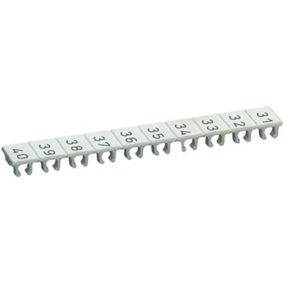 Mærkeskilt til opmærkning af 5 mm brede klemmer. Beskrevet med tallene 31-40 i hvid.