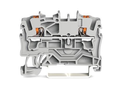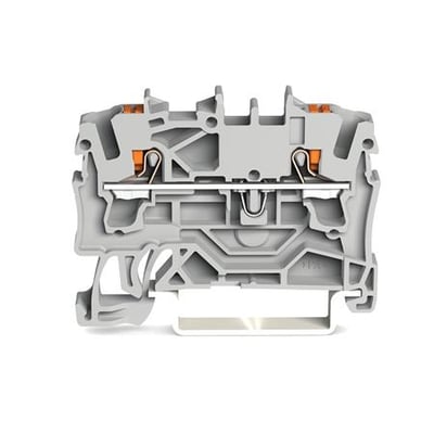 2-leder-gennemgangsklemme med betjeningsknap, 2,5 mm², grå.