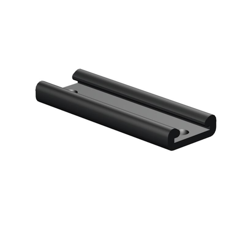 Denne mærkeholder er designet til at identificere enheder og kan nemt fastgøres med skruer, lim eller kabelstrips. Holderen er fremstillet af sort plastik og har en bredde på 17 mm. Den er ideel til brug på DIN-skinner.