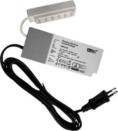 Effektiv 12V Kitch driver med et effektområde på 2,5W-25W og plads til op til 6 AMP stik. Understøtter dæmpning via for- og bagkant.