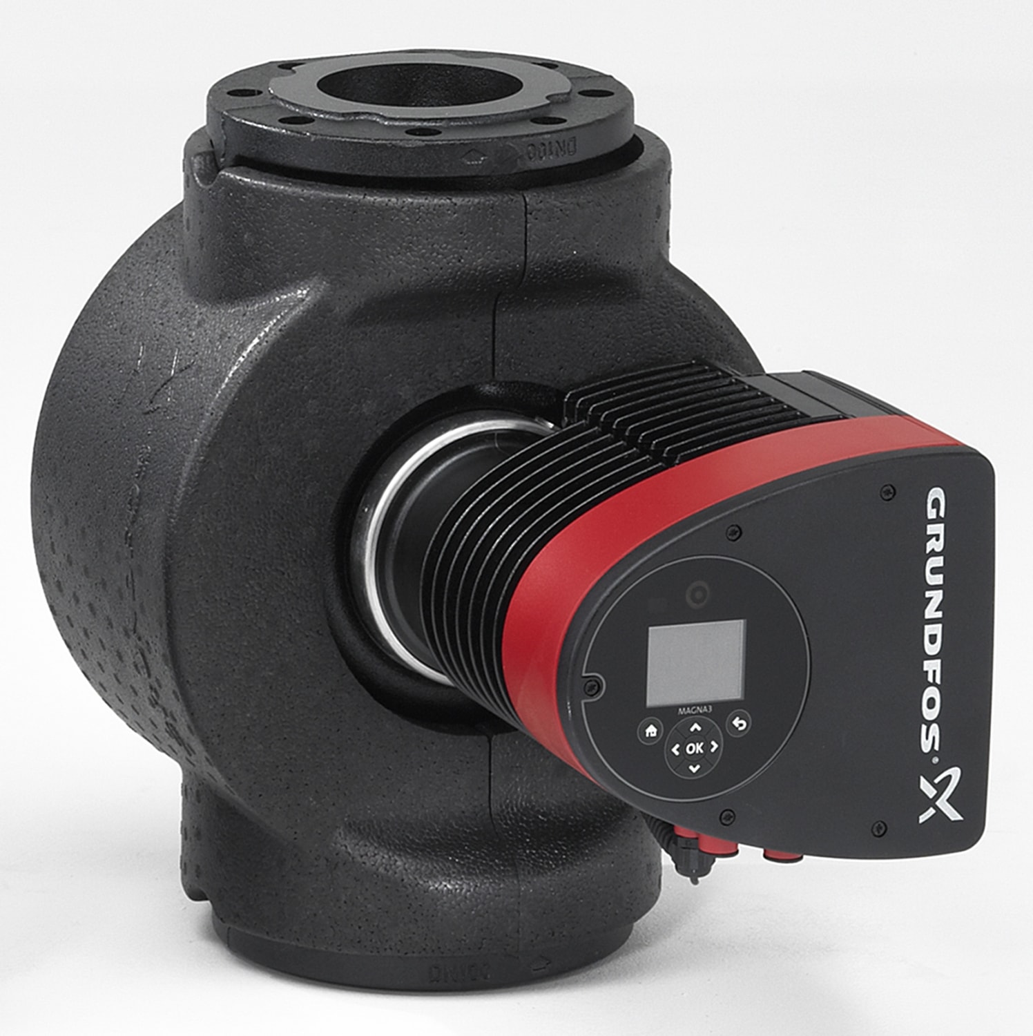 Grundfos Magna3 100-100 F 450 1x230V PN10 er en vådløberpumpe til varme- og køleformål. Vedligeholdelsesfri med lavt energiforbrug og integreret differenstryk- og temperatursensor.