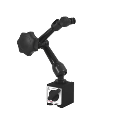 Magnetisk måleurstander med mekanisk låsning og on/off funktion for nem kontrol af holdekraften. Prismefod, mekaniske led og mulighed for finindstilling.