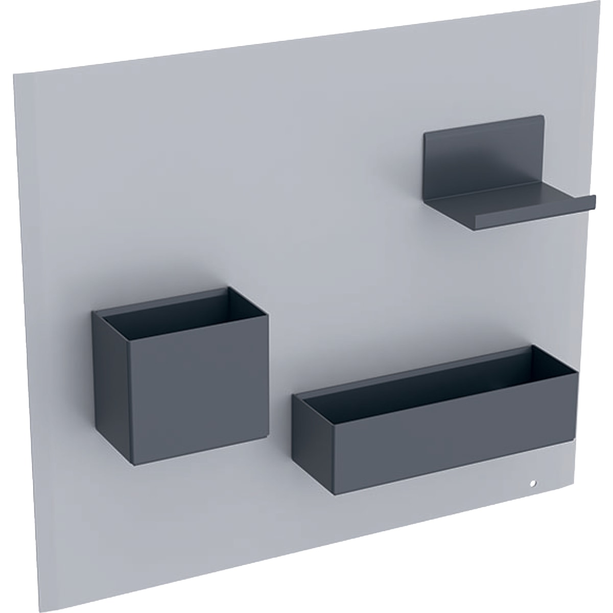 Geberit Group magnettavle med opbevaringskasser i mat sandgrå og mat lava. Mål: 449 x 388 x 75 mm.
