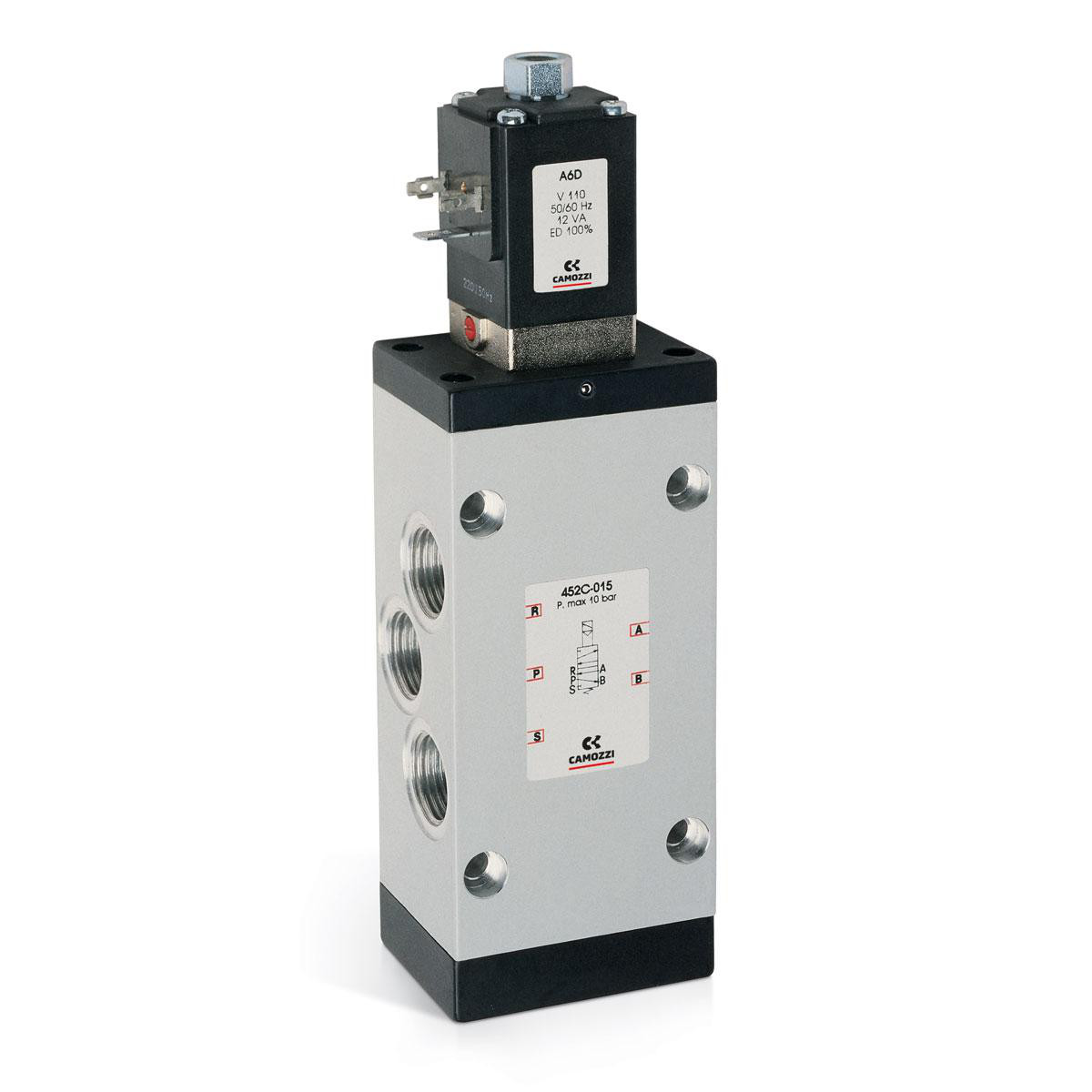 5/2-vejs magnetventil med G1/2 tilslutning og monostabil funktion fra Serie 452C.