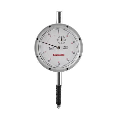 Dette præcisions måleur har en diameter på Ø58 mm og er udstyret med et robust metalkabinet samt et hærdet og slebet Ø8 mm h6 opspændingsskaft. Urskiven kan nemt drejes til nulstilling ved hjælp af den udvendige ring, hvilket sikrer præcise målinger hver gang. Inkluderet er også to justerbare tolerancemærker, der gør det let at indstille og overvåge specifikke måleområder.