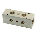 Manifold blok med indvendigt BSPP gevind, G1/4 og 2 udgange. Fremstillet af messing og overholder ROHS standarder.