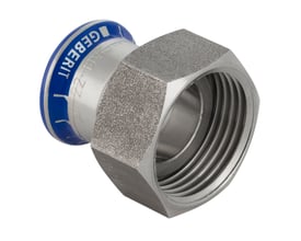 12. Mapress Rustfrit, 18 mm x ᴳ¾" tilslutningsforskruning med flad pakning, presmuffe/omløber (G) – Geberit