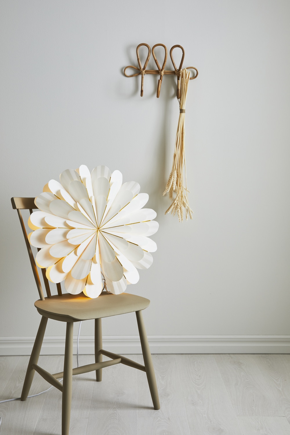 Stjernen er designet til indendørs brug og leveres med en 3,5 meter lang ledning, så den nemt kan placeres, hvor du ønsker. Den hvide farve gør, at den passer ind i enhver indretning.