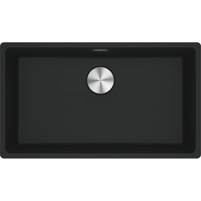 Firkantet køkkenvask i komposit (granit). Sort (matt) finish, 760x440 mm. Inkl. kurveventil og vandlås.