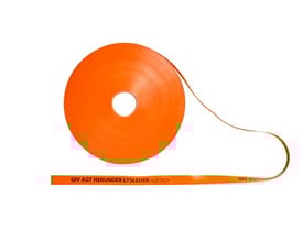 Orange markeringsbånd, 50x0,1mm, i rulle á 500 meter. Til fiberkabel - usynlig laserlys.