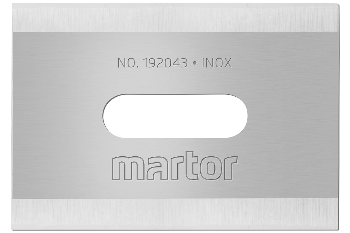 Industriknivblad (barberblad) i rustfrit stål til bl.a. fødevareindustrien. Klingen har længde- og facetslibning, der giver 4 skær. Tykkelse: 0,4 mm.