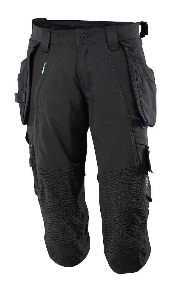 Knickersene har desuden praktiske detaljer som aftagelige hængelommer, værktøjsstropper og en lårlomme med telefonlomme og ID-kortholder. Vi anbefaler at bruge Mascot Waterloo knæpuder for optimal beskyttelse.