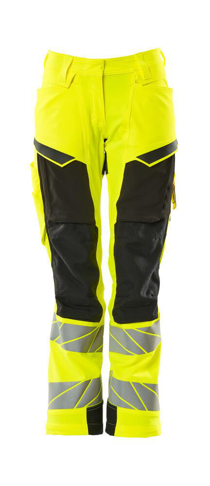 Hi-Vis bukser med damepasform. Vandafvisende finish, tofarvet design og ultimativt strækstof for optimal komfort og slidstyrke. Justerbare knælommer i CORDURA®.