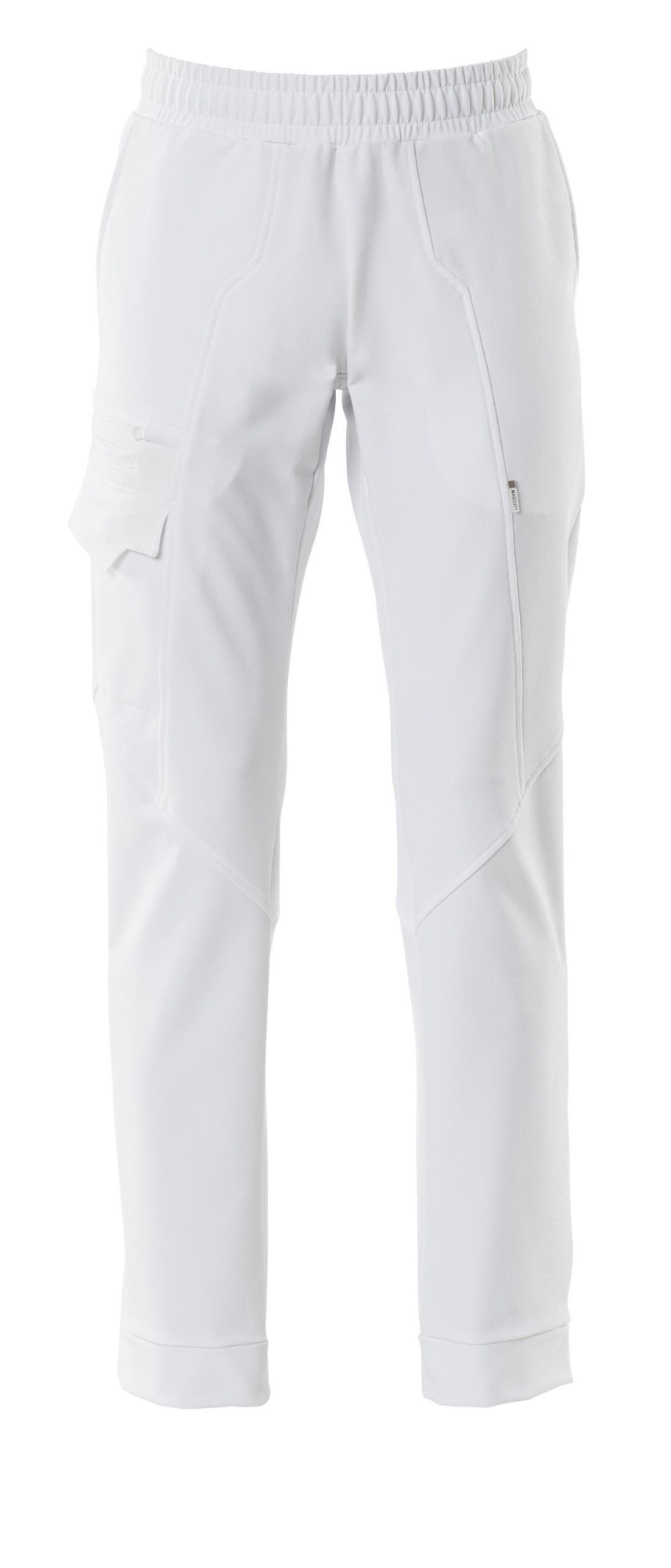 Slidstærke Mascot bukser i letvægts strækstof. Med elastik i taljen, lårlommer med trykknapper og lynlås, telefonlomme samt justering ved fødderne. Velegnet til industrivask.