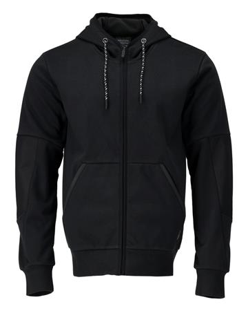 Vindtæt MASCOT® CUSTOMIZED hættetrøje i sort, størrelse XS. Med vand- og smudsafvisende overflade og slidstærke albueforstærkninger. Reflekser øger synligheden.