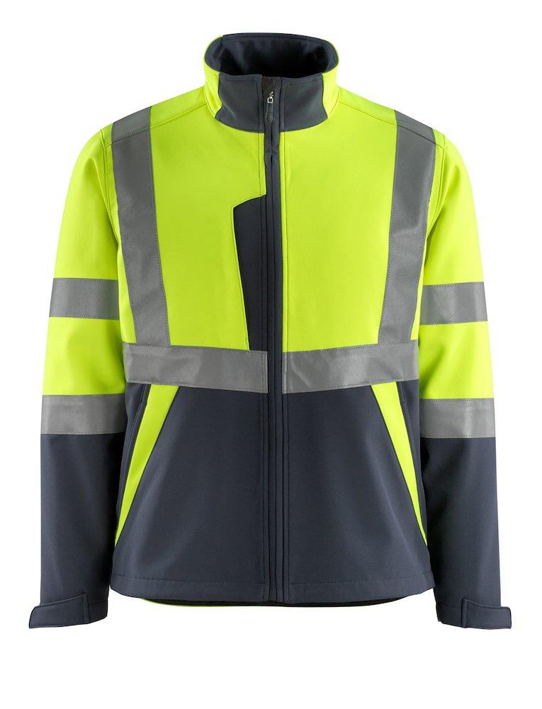 Denne Mascot softshelljakke er designet til synlighed og komfort. Jakken er fluorescerende med både lodrette og vandrette reflekser, hvilket sikrer høj synlighed i arbejdsøjemed. Den tofarvede jakke er åndbar og har en blød fleeceforing på indersiden for ekstra varme og komfort.