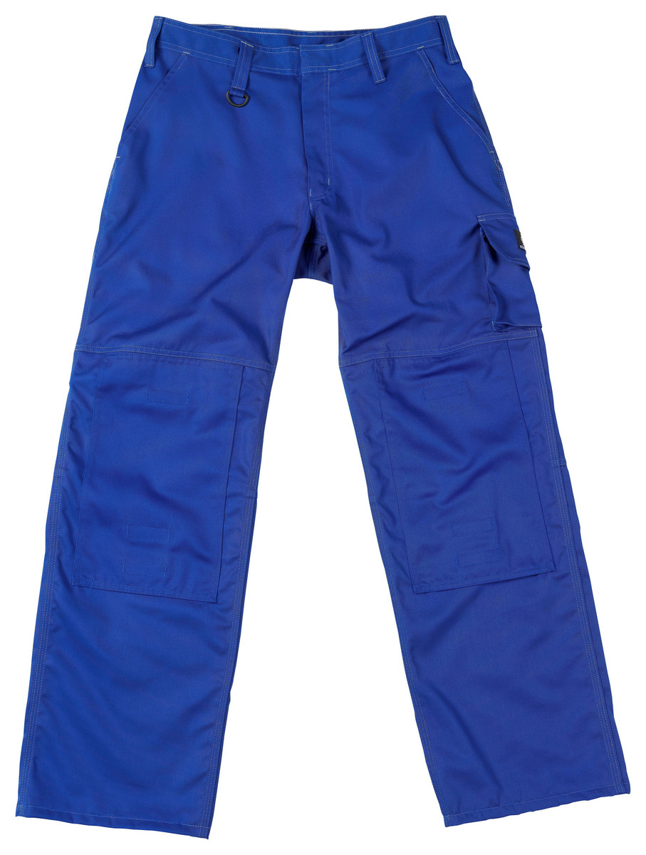 Let metervare med trenålssømme, ergonomisk formede bukseben og justerbare knælommer. Forstærkede baglommer og tommestoklomme. Kan industrivaskes.