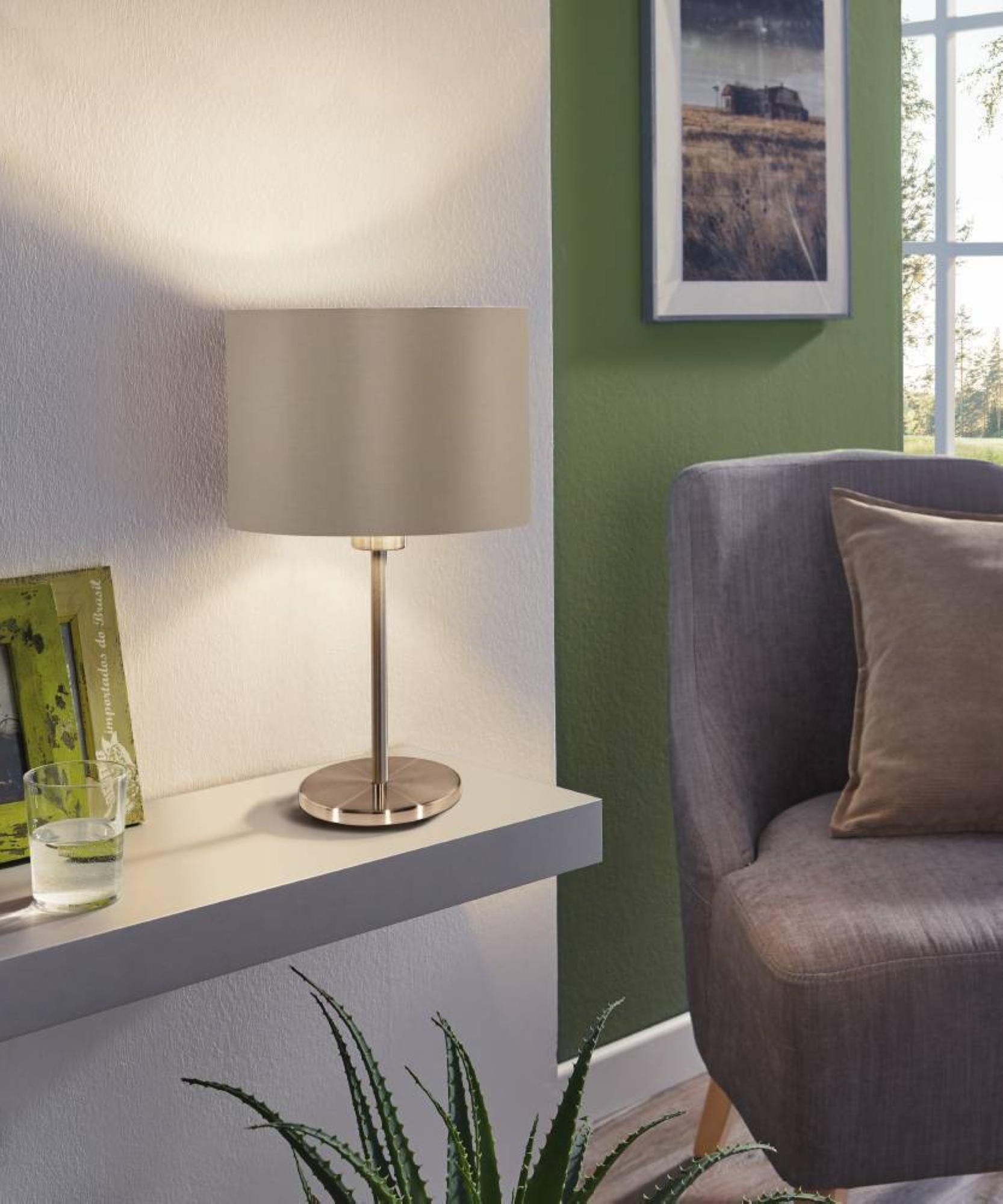Den stilfulde Maserlo bordlampe fra EGLO kombinerer elegant design med praktisk funktionalitet. Med sit moderne udseende og farvekombinationen af taupe og guld, vil denne lampe tilføre et sofistikeret touch til ethvert rum.
