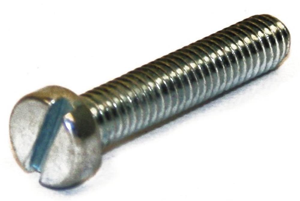 Skruen har et cylindrisk hoved med en lige kærv, hvilket gør den nem at montere med en passende skruetrækker.