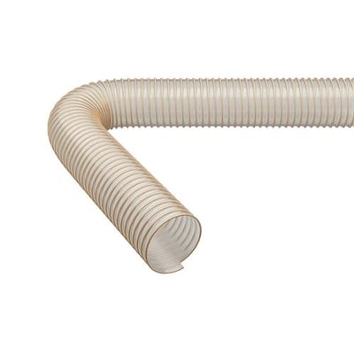 Slange i PUR med stålspiral, antistatisk < 10^9 Ω. Ideel til sug og tryk af finkornede partikler som støv, pulver, væske og papirfibre, samt udsugning af luft og gasser.