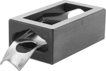 Matrice til rektangulære hulstanser. Denne matrice er velegnet til ST37 stål op til 2,0 mm tykkelse og kan bruges med både manuel og hydraulisk betjening.