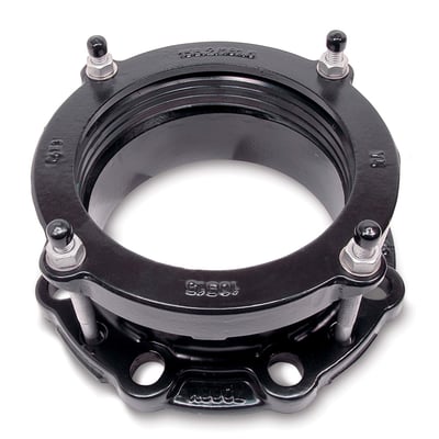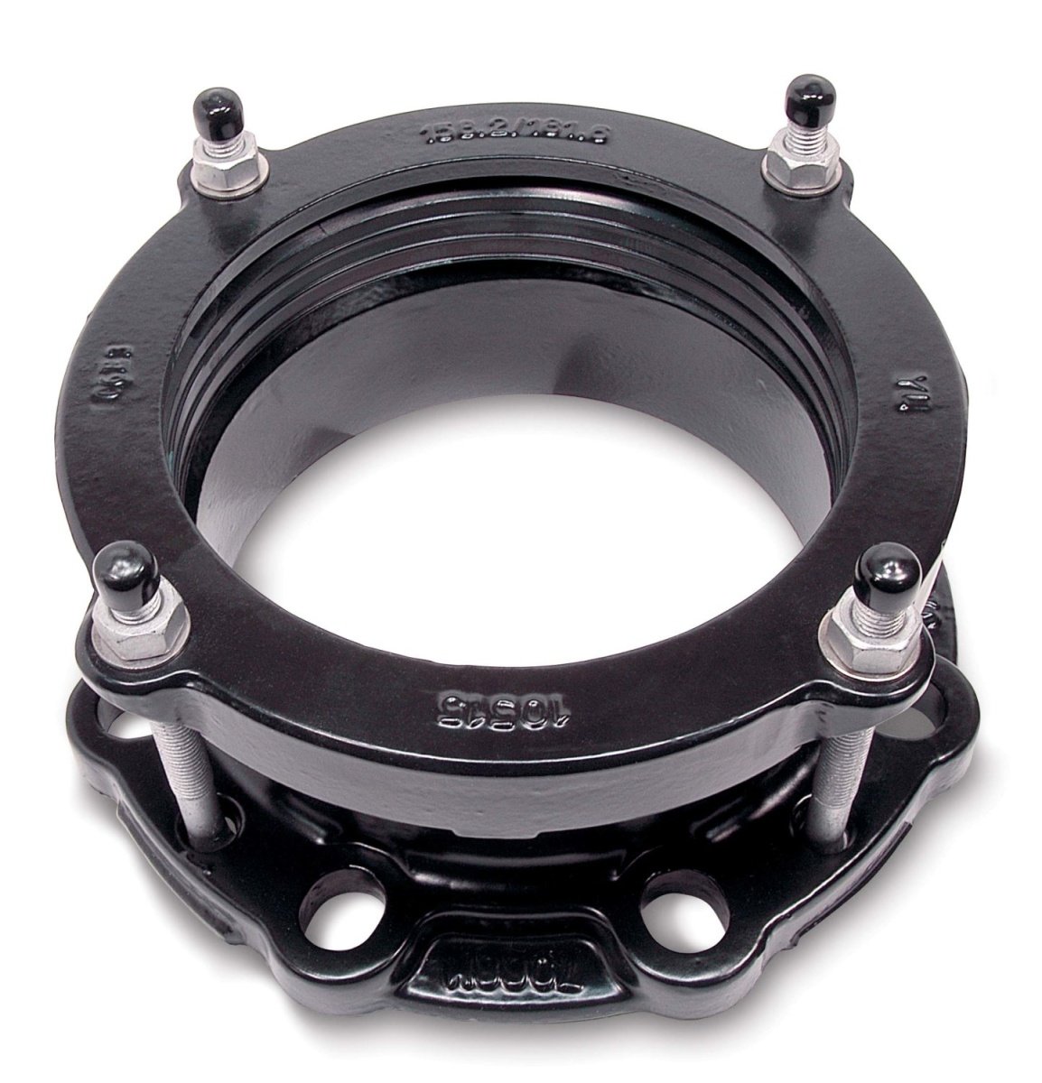 Lige MaxiDaptor flangekobling til gasinstallationer, med en diameter på 218-244 mm og en trykklasse på PN6. Fremstillet i duktiljern med NBR gummi.